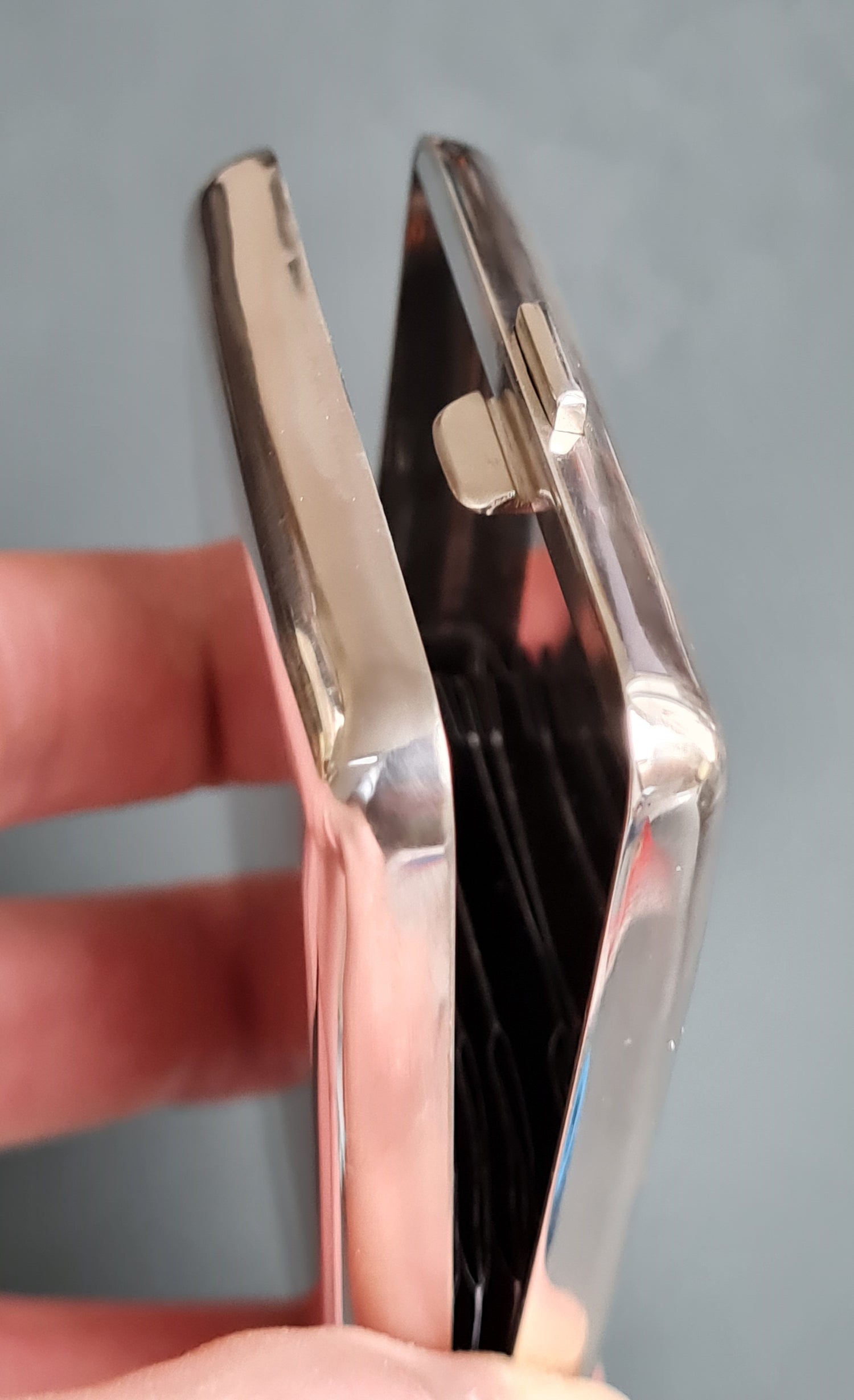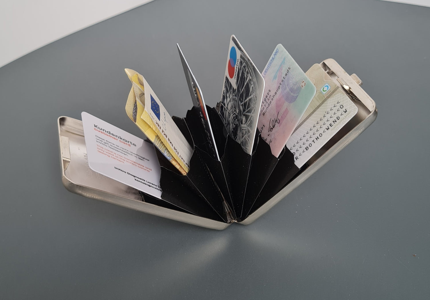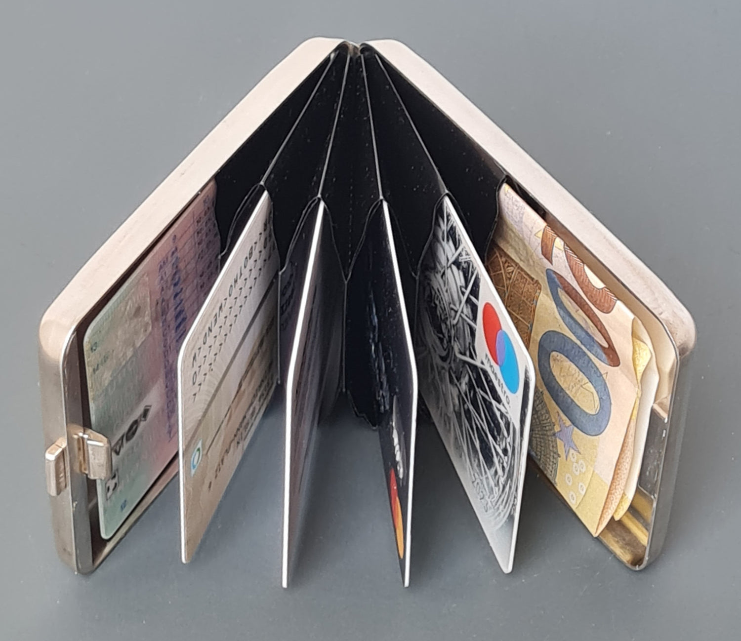 The design combines the solid precious metal in hand-flattering soft curves to keep your most valuable plastic cards safe and snug with minimal space requirements. Each Sterling Wallet is exclusively handcrafted in Germany and represents an exclusive one-of-a-kind piece of art. It's jewelry, yet designed for everyday use and carry around.