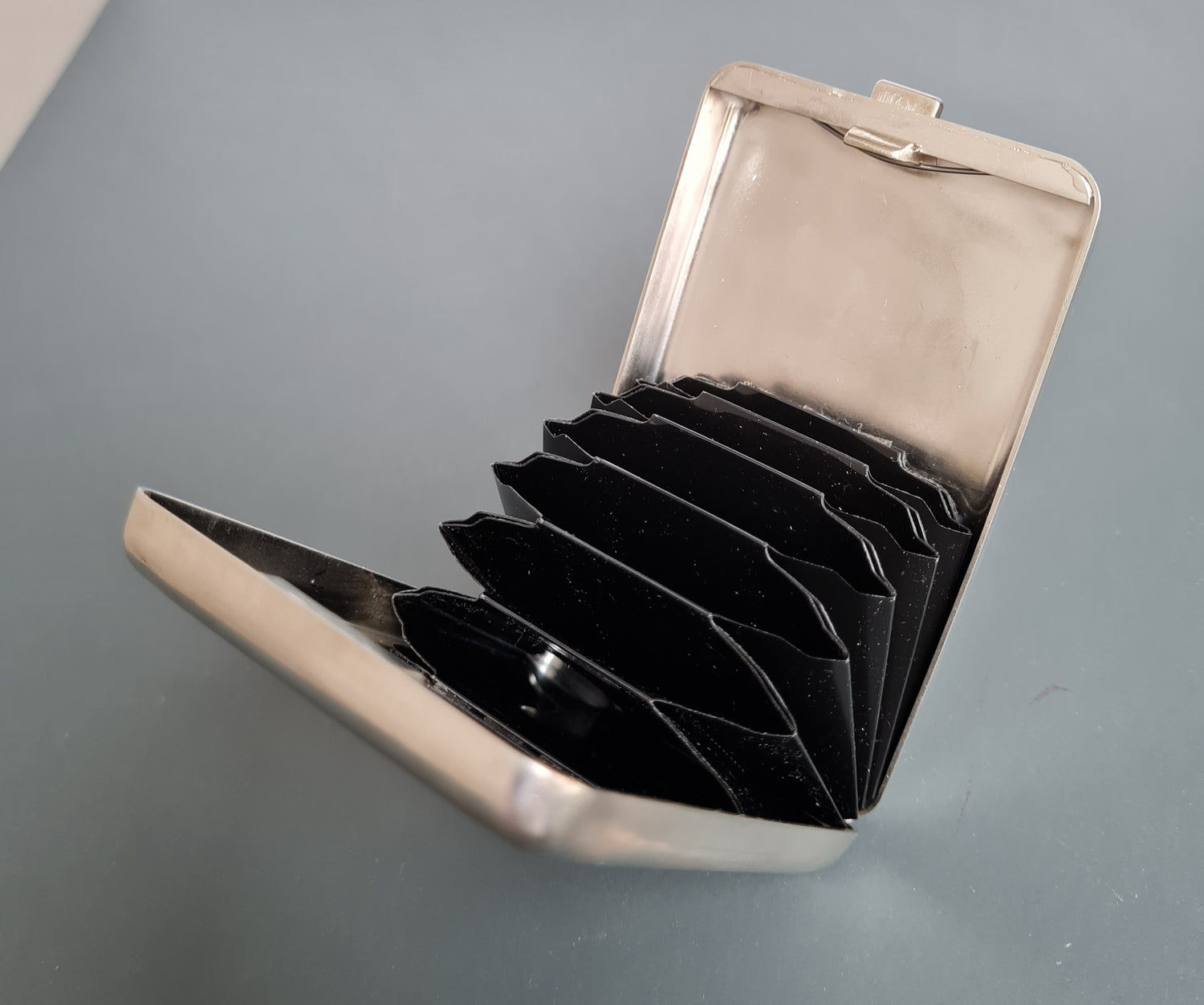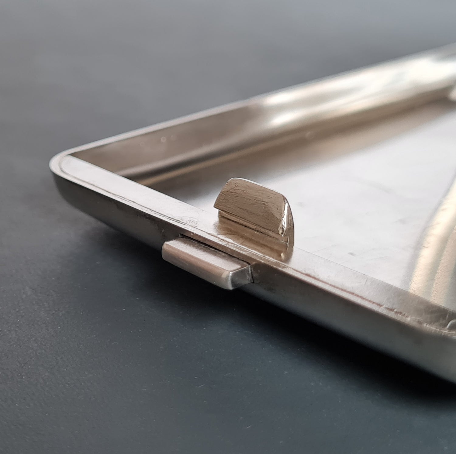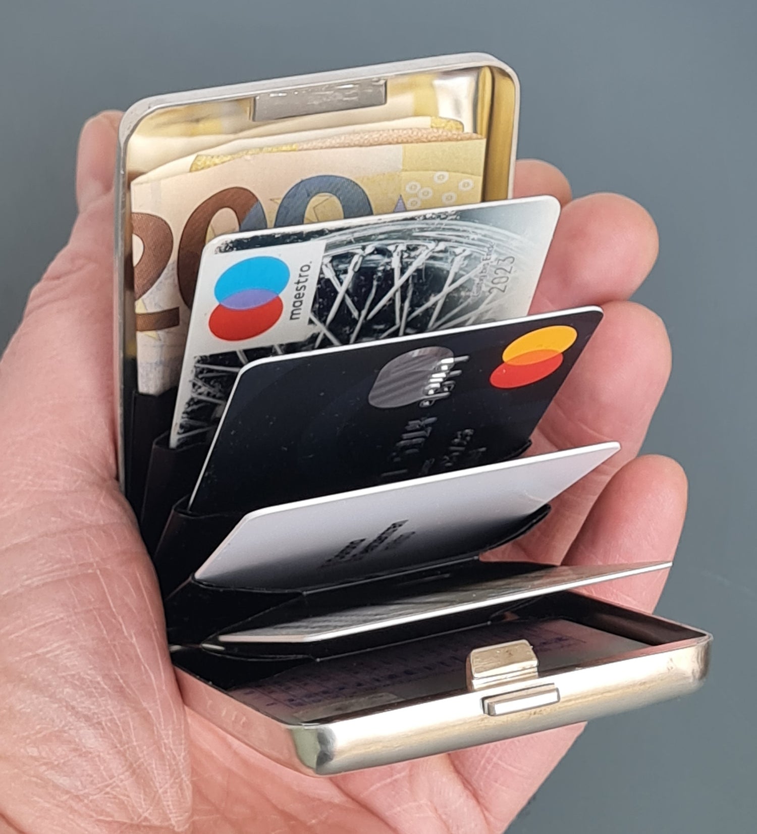 The design combines the solid precious metal in hand-flattering soft curves to keep your most valuable plastic cards safe and snug with minimal space requirements. Each Sterling Wallet is exclusively handcrafted in Germany and represents an exclusive one-of-a-kind piece of art. It's jewelry, yet designed for everyday use and carry around.